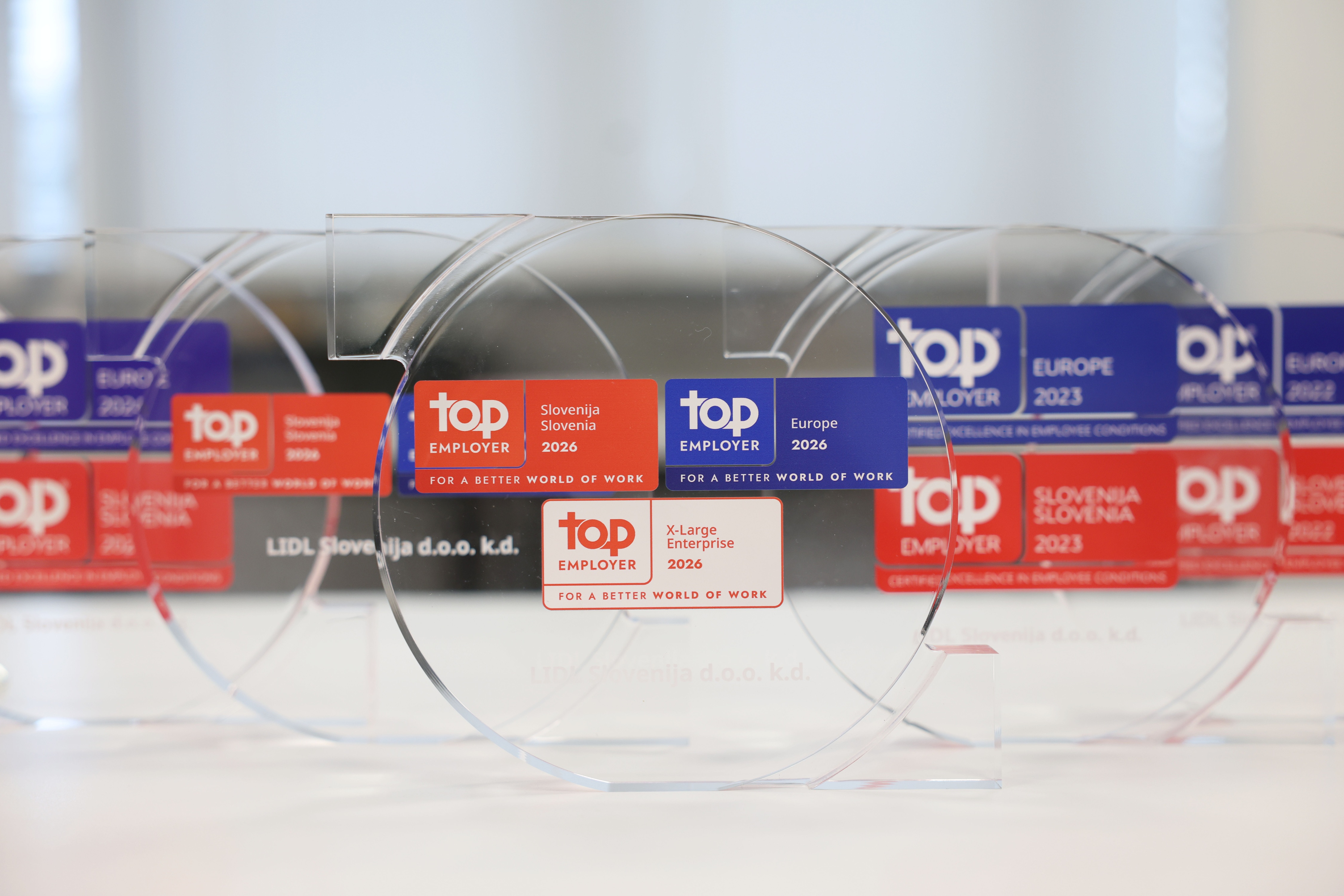 Lidl Slovenija je letos prejel že sedmi certifikat Top Employer Slovenija in Top Employer Europe za leto 2026, ki ga podeljuje priznana mednarodna organizacija Top Employers Institute. Certifikat prejmejo po njihovem izboru najboljši delodajalci po vsem svetu, ki izstopajo po izjemnih praksah in pogojih za dobrobit zaposlenih. Lidl je, tako kot lani, prejel tudi prestižni pečat Enterprise Seal, ki potrjuje dosledno zagotavljanje visokih standardov in kakovostnih procesov na kadrovskem področju v vseh 31 državah, v katerih deluje.